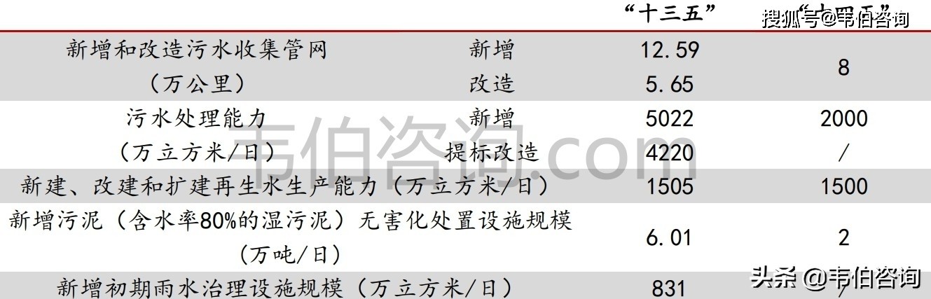图表12:“十三五”及“十四五”我国污水处理主要目标对比