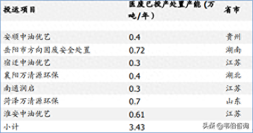 图表2:江环保医废处置项目及产能情况(万吨/年)