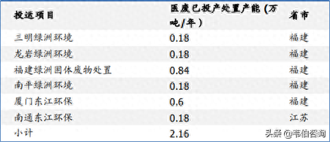 公司目前运营及在建的医废及危废项目共12个,运营的医废及危废项目规模约4万余吨/年。医疗废物尤其是涉疫医疗废物,实现日进日清。