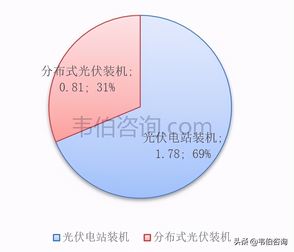 图表1:截止2021年3月底全国光伏并网装机构成(亿千瓦,%)